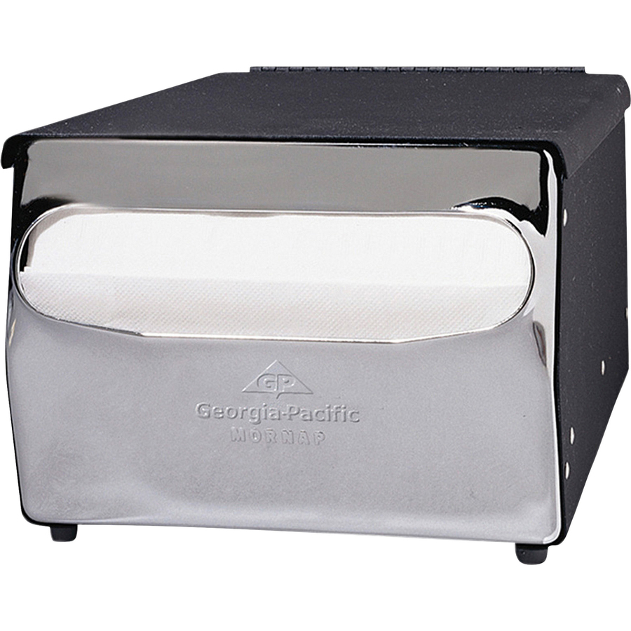 These dispensers come in various designs and sizes to accommodate different quantities of napkins and to fit the aesthetic of the establishment. This type of napkin and dispenser are commonly used in self-service areas of restaurants, breakrooms, cafeterias, and other places where customers can easily access napkins as needed.
