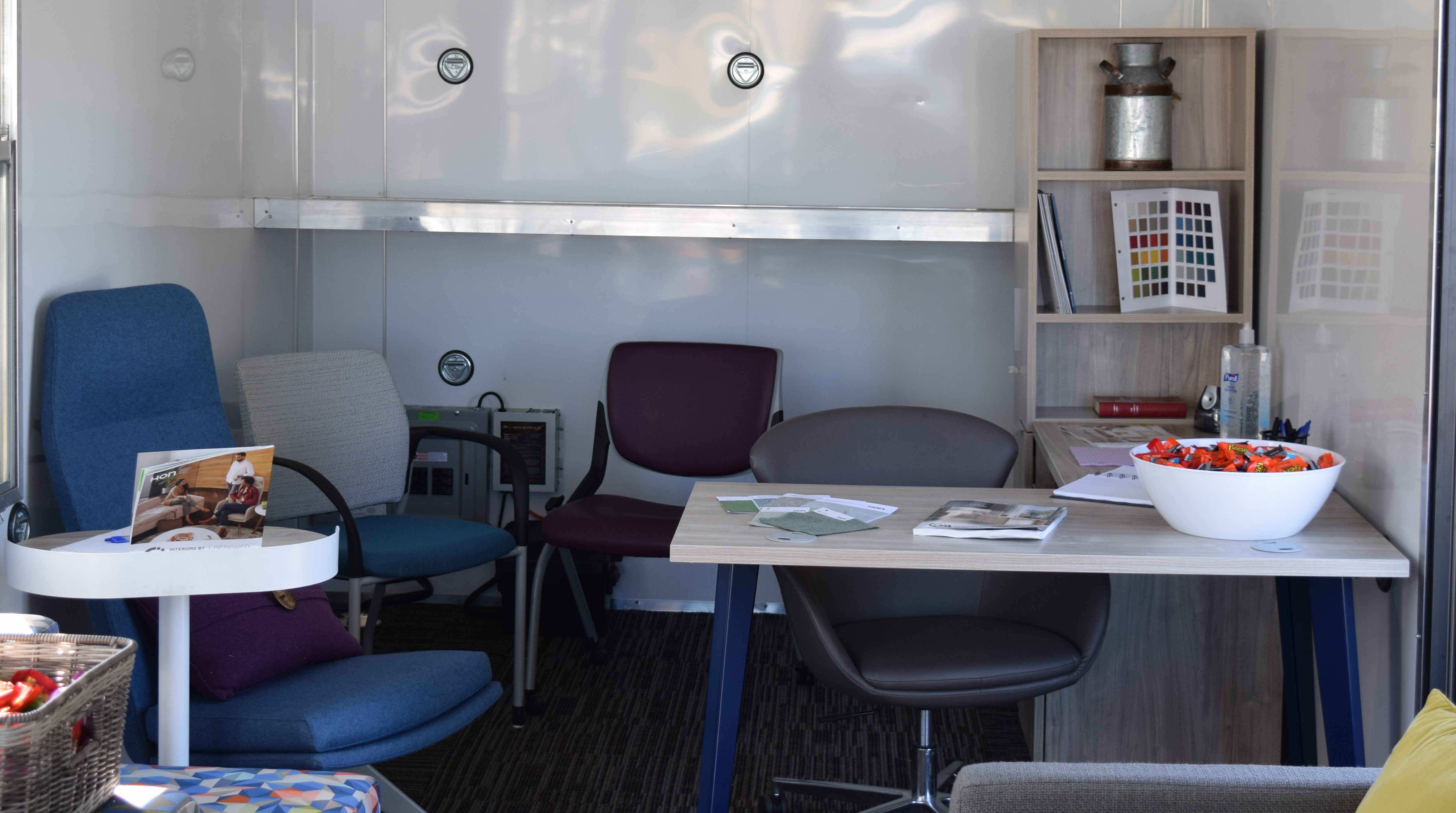 Outside the venue, FSI Office showcased a range of products with displays on the furniture truck. The truck featured a variety of furniture, including chairs, tables, and bookshelves, offering guests a firsthand look at our offerings. Additionally, mock setups were designed to demonstrate how the furniture could be styled in different spaces, giving attendees inspiration for creating functional environments in their offices.